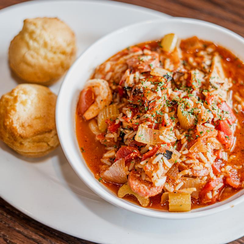 Smoked chicken, andouille sausage, shrimp, white rice, cajun tomato broth
